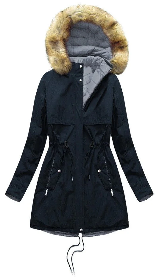 Tmavě modro-šedá oboustranná dámská zimní bunda s kapucí (w214big)