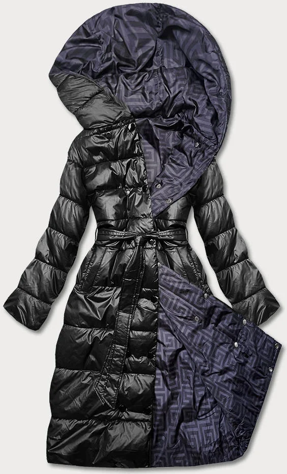 Černá oboustranná dlouhá bunda s kapucí (p22-6635-1)
