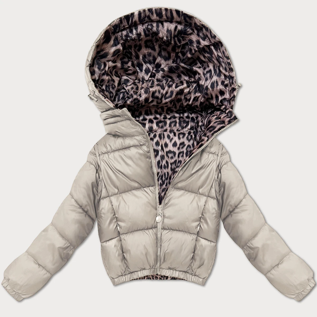 Béžová oboustranná krátká dámská bunda s panteřím vzorem Minority (M6-6001-62)