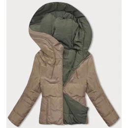Béžovo-khaki oboustranná krátká bunda s kapucí (B8181-101011)