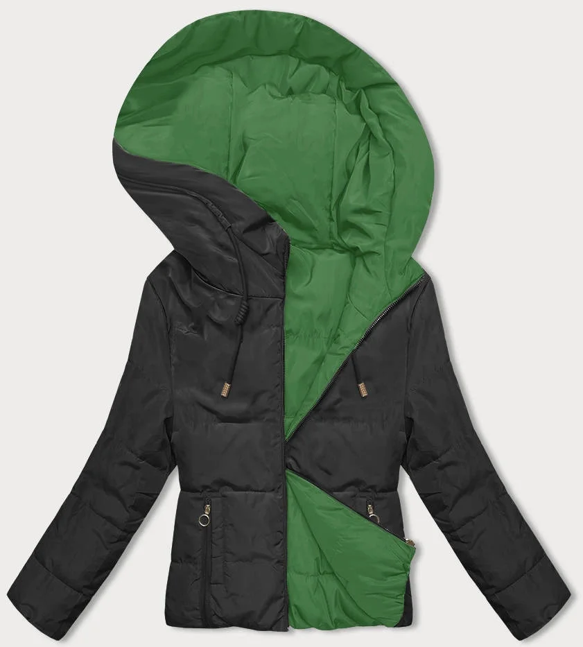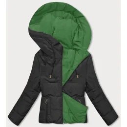 Černo-zelená oboustranná krátká bunda s kapucí (B8181-1082)