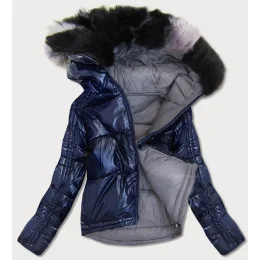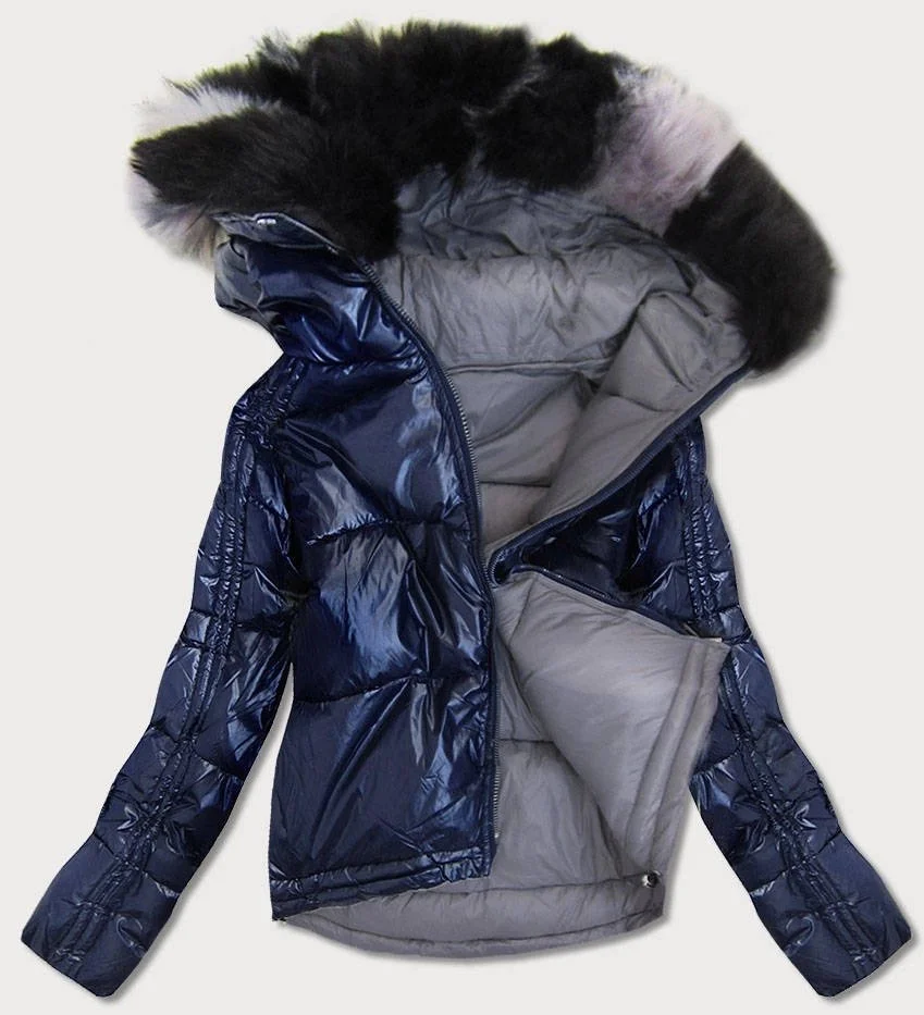 Tmavě modro-šedá oboustranná dámská bunda (b9555)