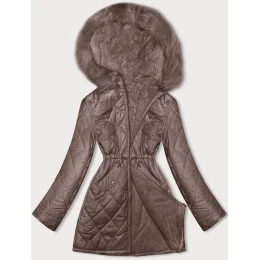 Oboustranná dámská prošívaná bunda - kožíšek v barvě coffee (H-897-89)