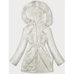 Oboustranná dámská prošívaná bunda - kožíšek v barvě ecru (H-897-11)