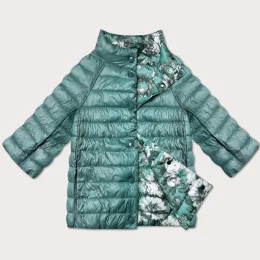Tmavě mátová/květovaná oboustranná dámská bunda se 3/4 rukávy Minority (M23-7009-253)