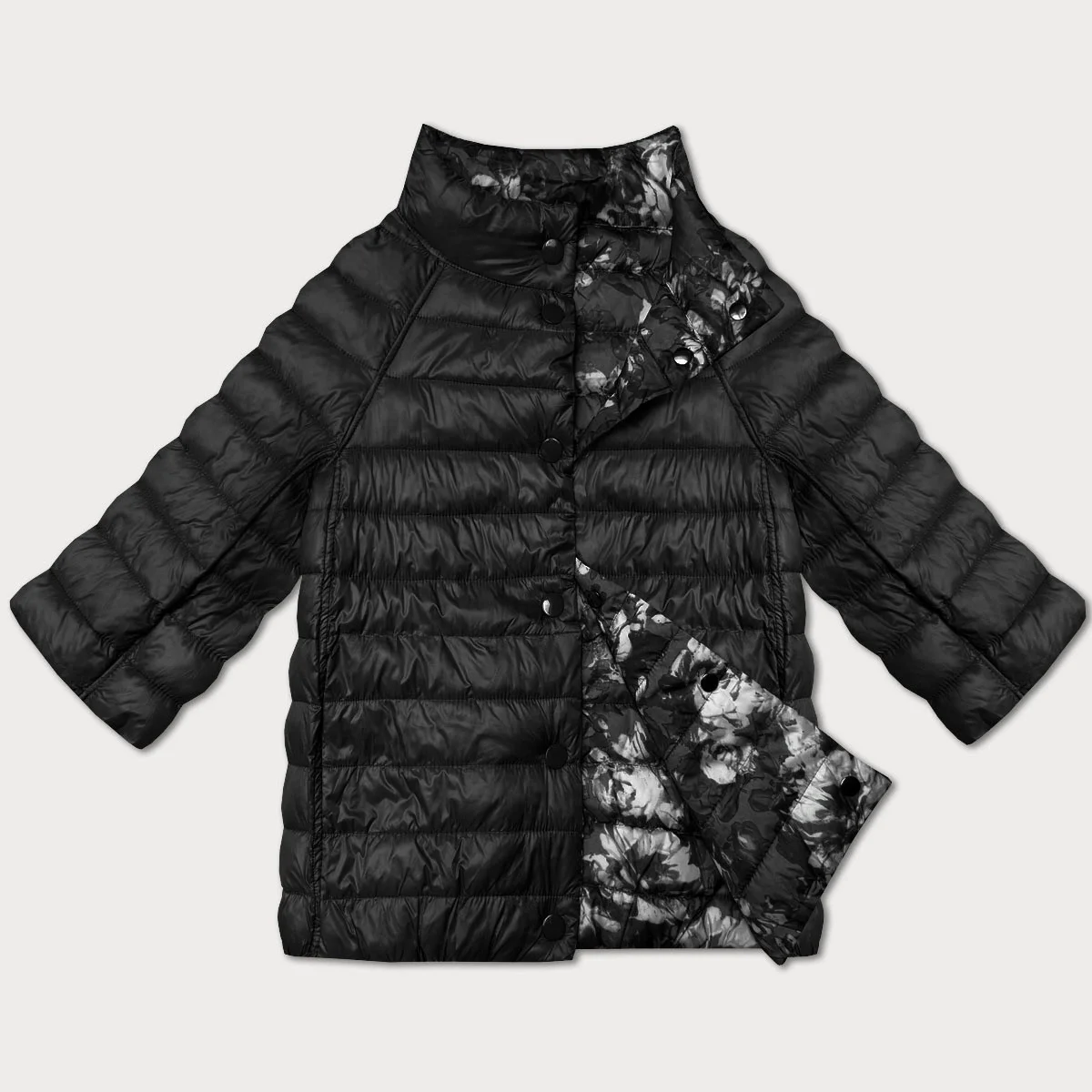 Černá oboustranná květovaná dámská bunda se 3/4 rukávy Minority (M23-7009-1)