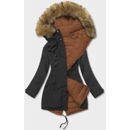 Černo-karamelová oboustranná dámská zimní bunda (2M-21508)