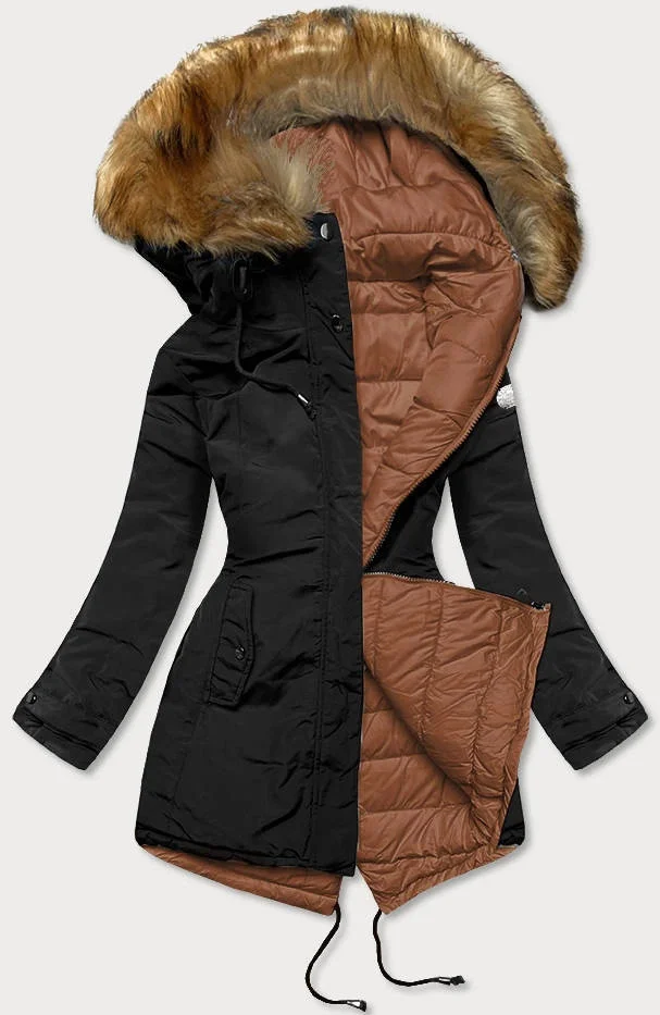 Černo-karamelová oboustranná dámská zimní bunda (m-21508)