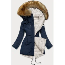 Tmavě modro-bílá oboustranná dámská zimní bunda (m-21508)