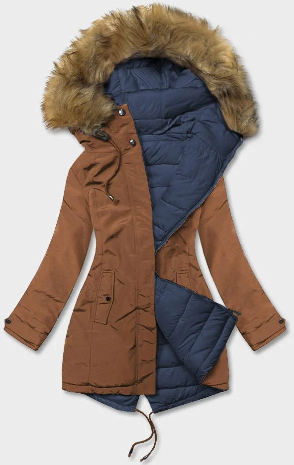 Karamelovo-tmavě modrá oboustranná dámská zimní bunda (2M-21508)