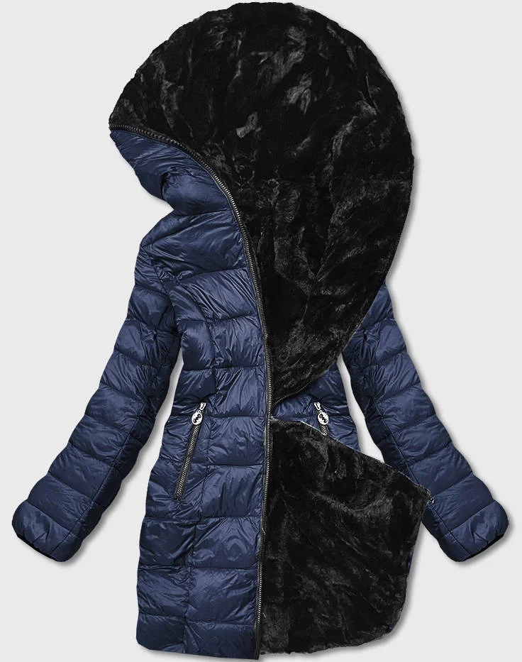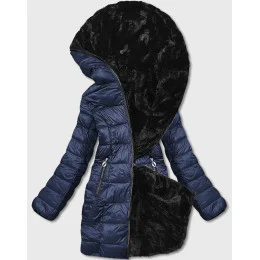 Tmavě modrá oboustranná dámská bunda - kožíšek (b8053-3)
