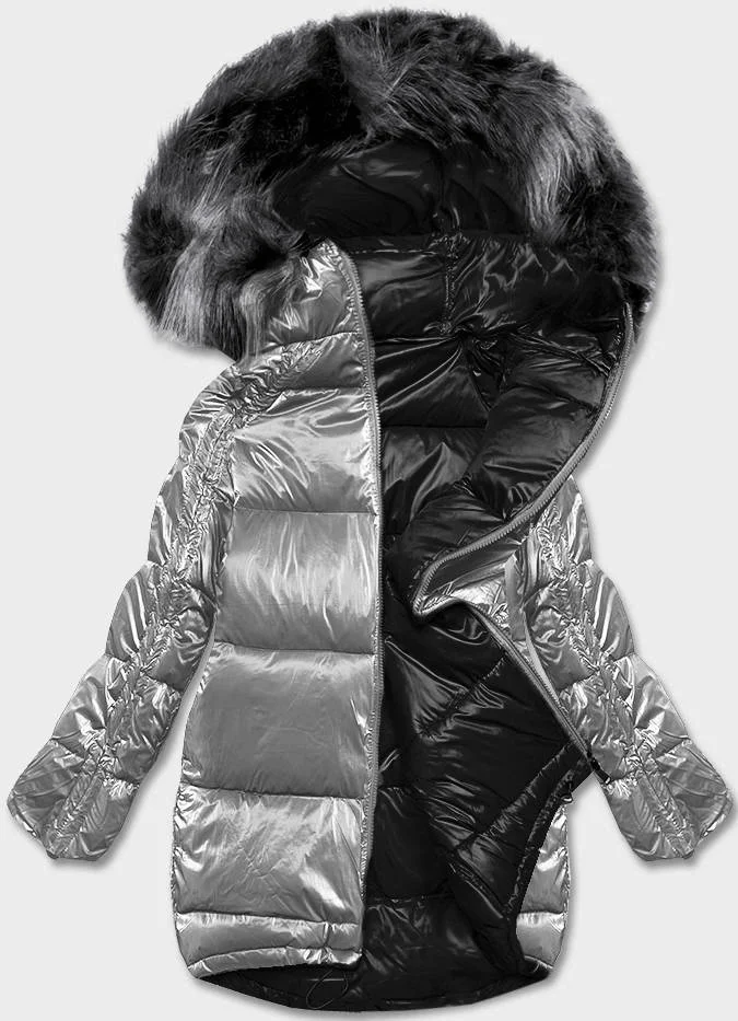 Šedo-černá oboustranná oversize bunda (h-1088-61)
