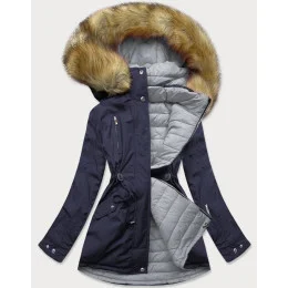 Tmavě modro-šedá oboustranná dámská bunda s kapucí (w213big)