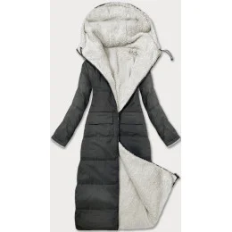 Jedna strana bundy je prošívaná a druhá je typu "beránek". Bunda je lehce vypasovaná, je zateplená syntetickou péřovou výplní, má dvě kapsy a zapíná se dvousměrným zipem. Model má kapuci, kterou není možné odepnout. Bunda má délku do poloviny lýtek.