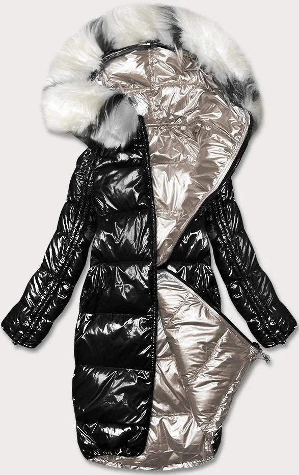 Černo-béžová oboustranná metalická zimní bunda (P21-7901-1+62)