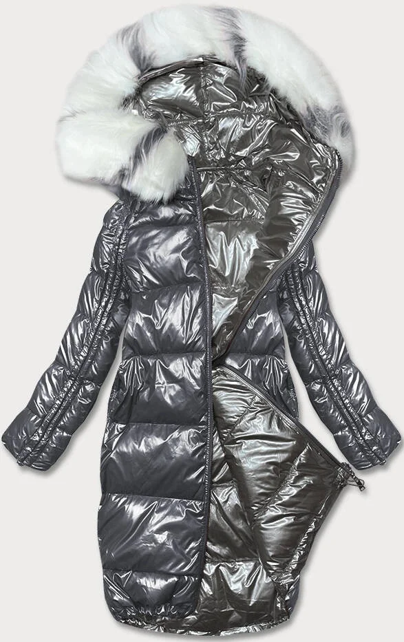 Grafitově-šedá oboustranná metalická zimní bunda (p21-7901-27+61)