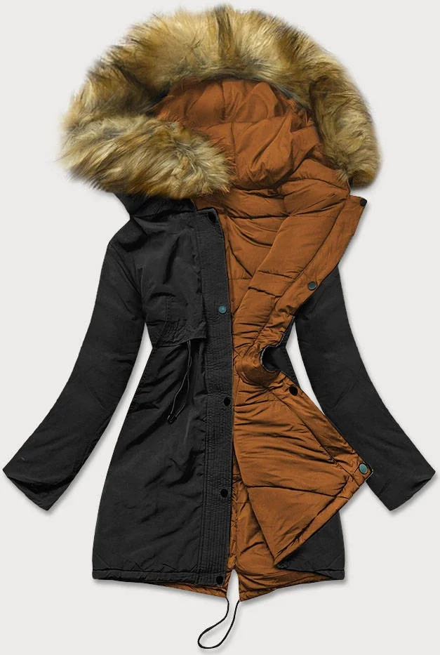 Černo-karamelová oboustranná dámská zimní bunda (m-136)