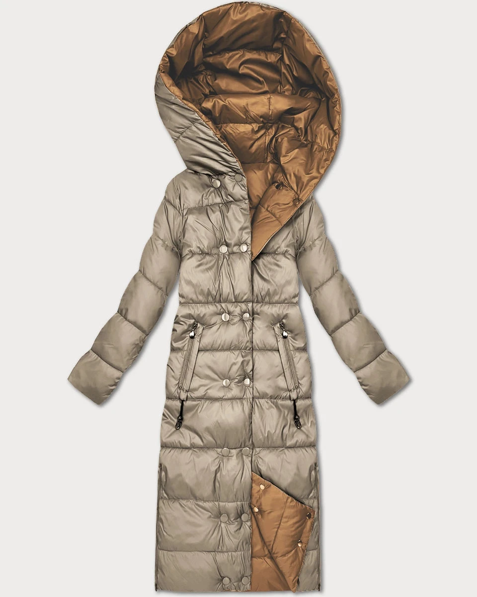 Béžovo-hnědá oboustranná zimní bunda v délce ke kolenům Minority (P3-6017-62+301)