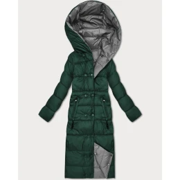 Tmavě zeleno-šedá oboustranná zimní bunda v délce ke kolenům Minority (P3-6017-33+61)