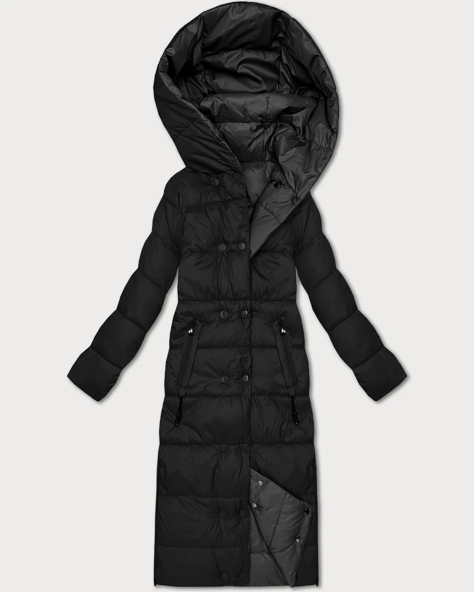 Černo-grafitová oboustranná zimní bunda v délce ke kolenům Minority (P3-6017-1+27)