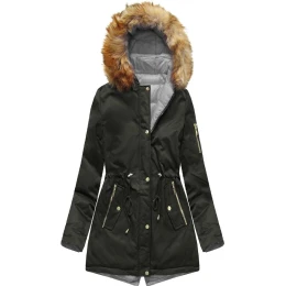 Army-šedá oboustranná dámská zimní bunda parka s kapucí (b2636)