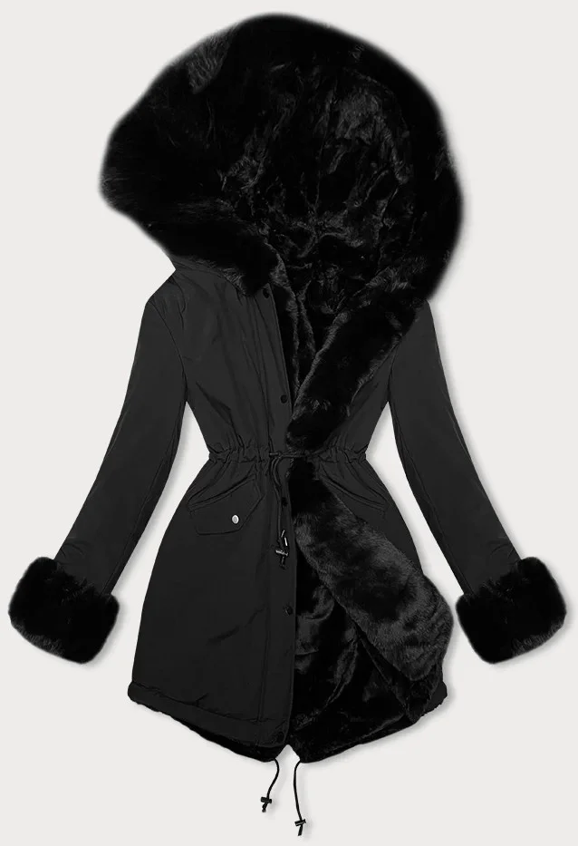 Černá oboustranná zimní bunda parka-kožíšek J Style (11Z8085)