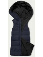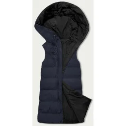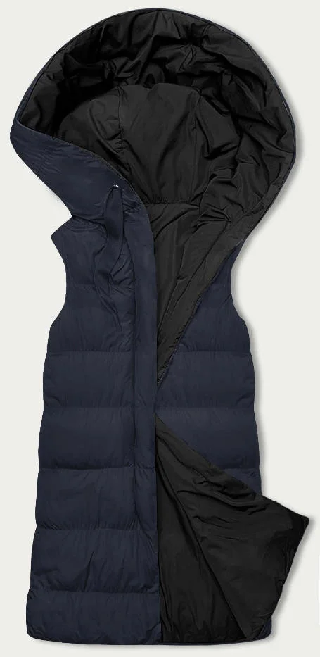 Tmavě modro-černá oboustranná dlouhá dámská vesta (V723)