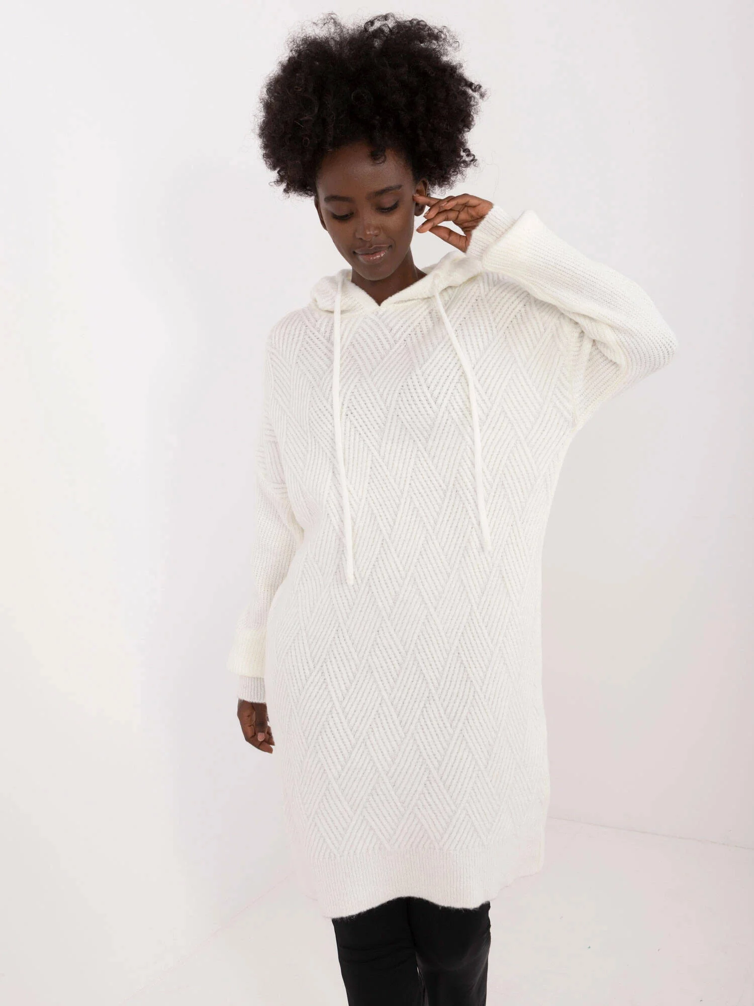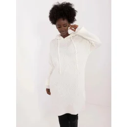Úpletové šaty v barvě ecru s kapucí (0582)