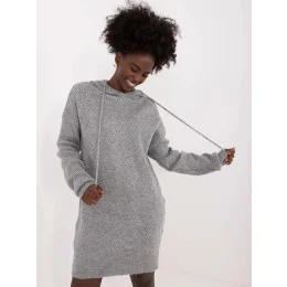 Šedé úpletové šaty s kapucí (0582)