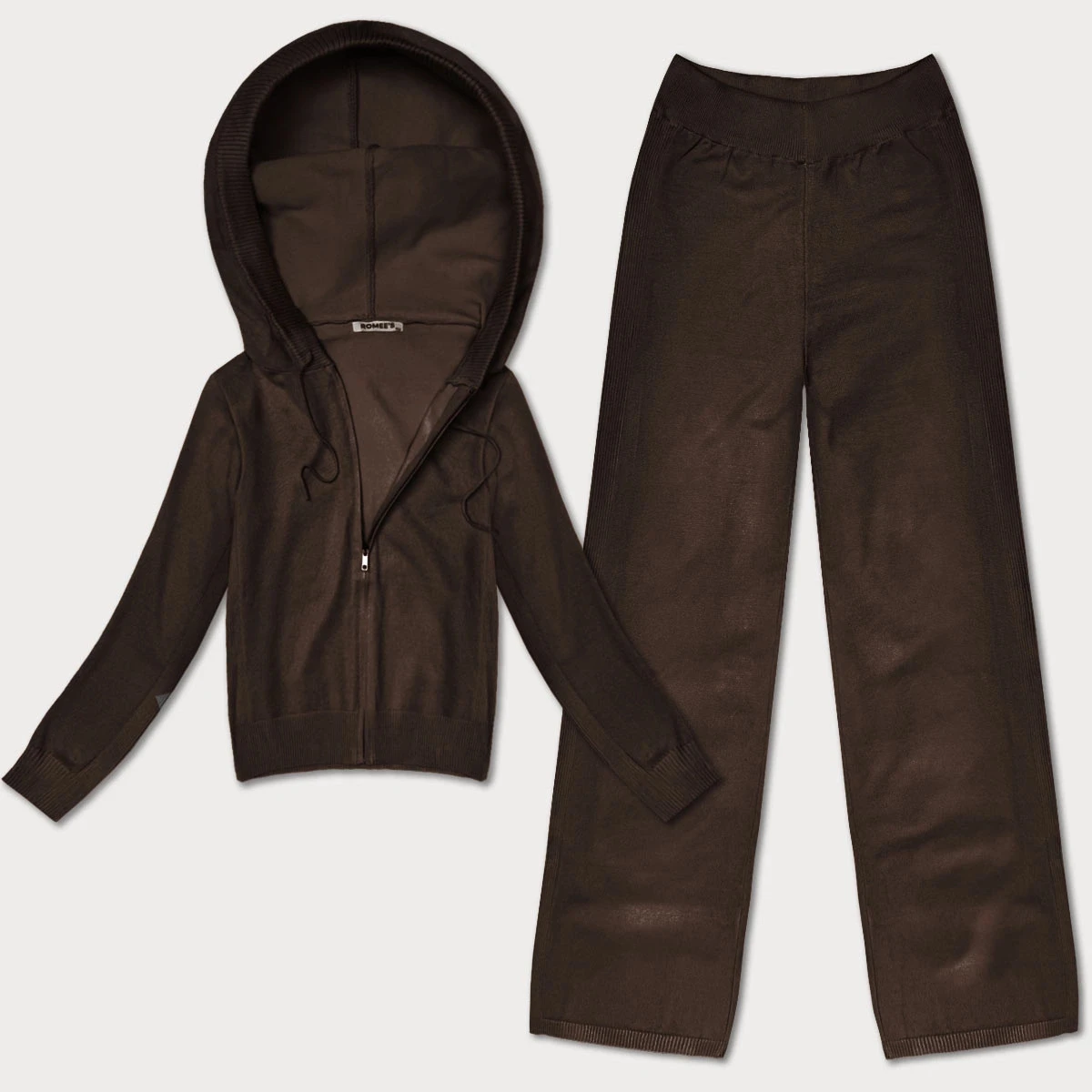 Úpletový dvoudílný komplet v čokoládové barvě - mikina a kalhoty (26C8803-158)
