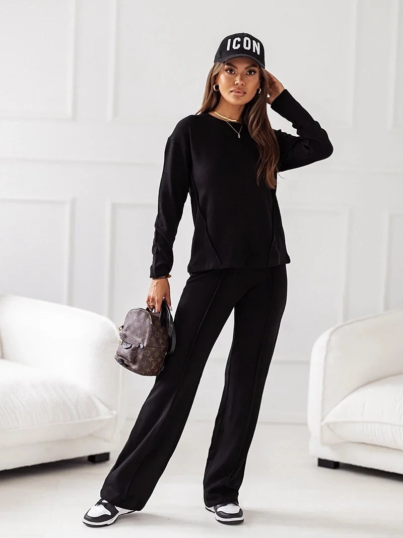 Černý dvoudílný úpletový komplet - blůza a kalhoty (VE74)