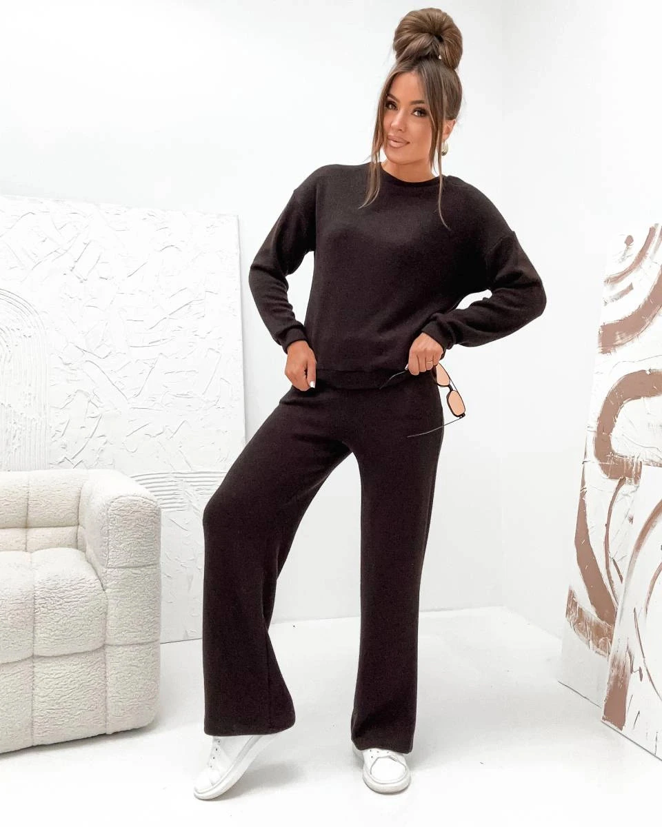 Dvoudílný úpletový komplet v čokoládové barvě (821121)