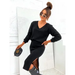 Černý dámský úpletový komplet se sukní (82103)