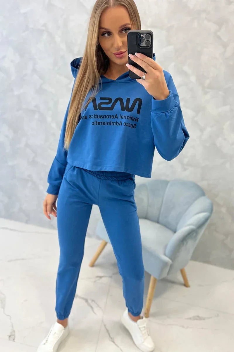 Představujeme vám sadu mikiny a kalhot s nápisem. Mikina má kapuci. Sada je vyrobena z vysoce kvalitního materiálu. Velikost je univerzální a vyhovuje dámám velikosti S, M nebo L.