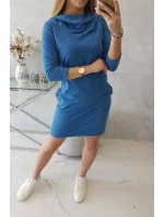 Džínové šaty s kapucí a kapsami
