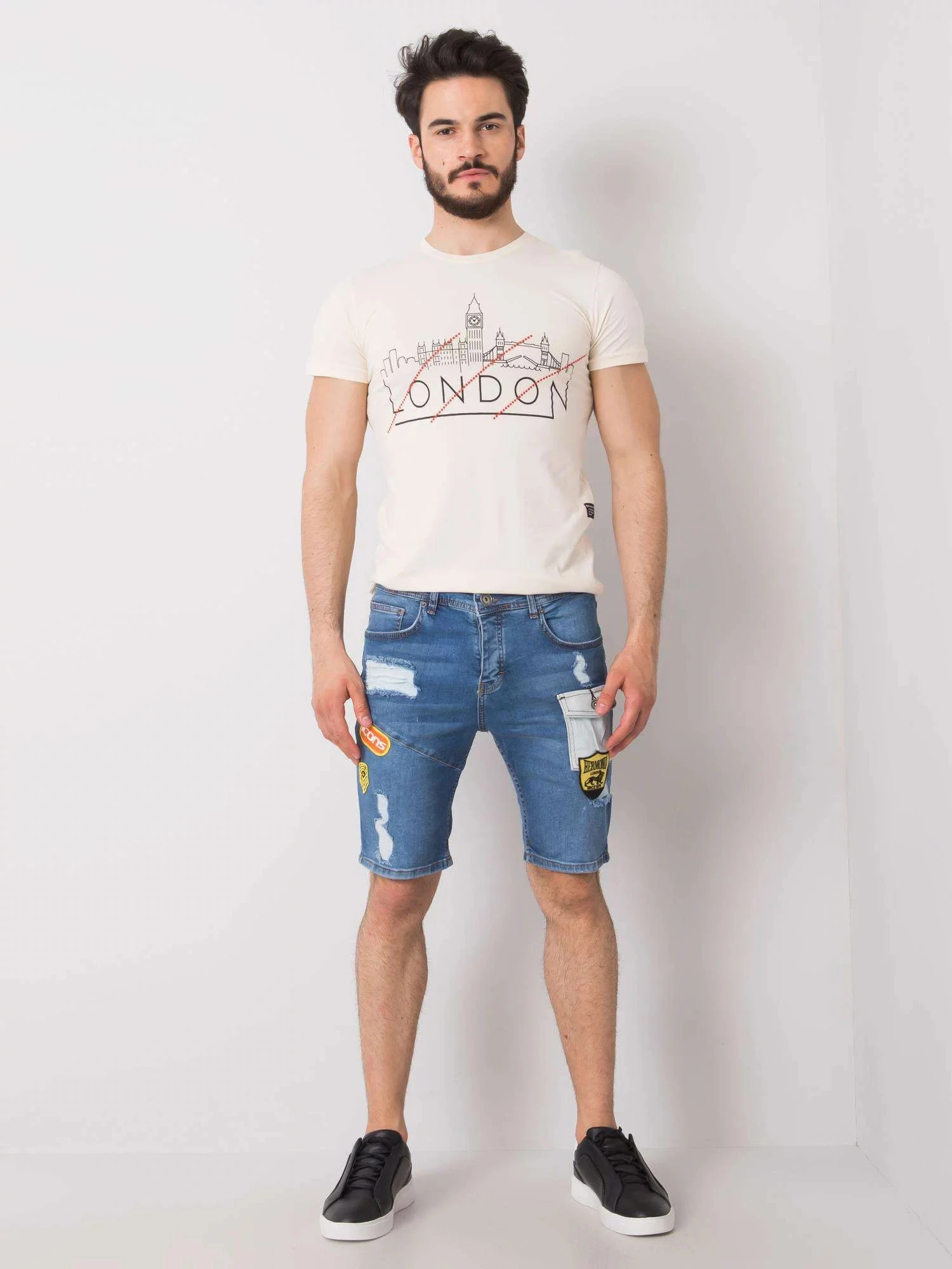 Modré džínové šortky pro muže.