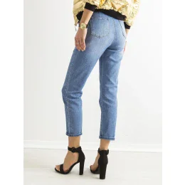 Džínové boyfriendy s vysokým pasem a kravatou v modré barvě.