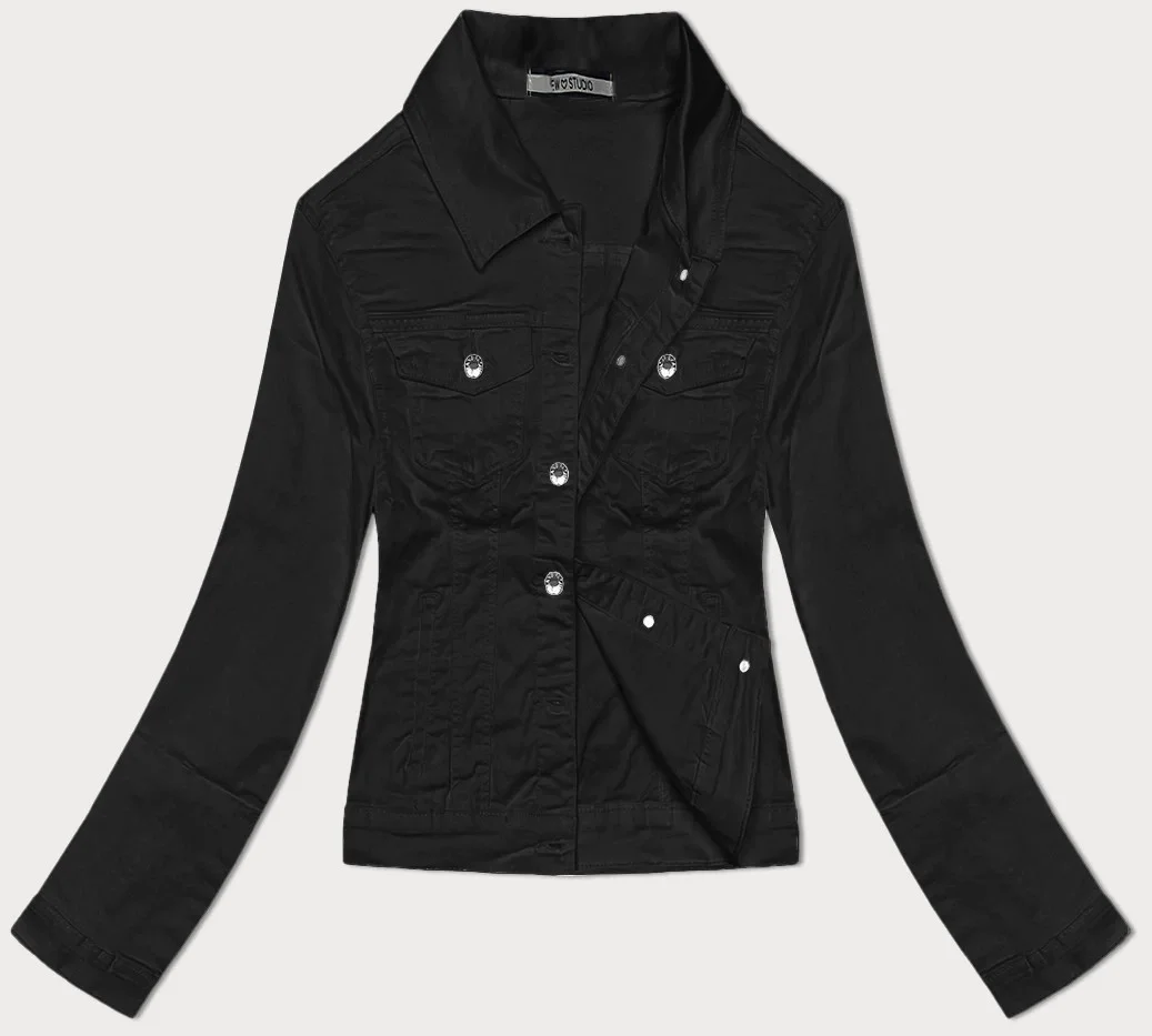 Černá dámská džínová plus size bunda na knoflíky (W028-B)