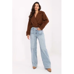 Dámské kalhoty s širokými nohavicemi vyrobené z bavlny jsou ideální volbou na každodenní nošení v ležérním stylu. Hladký materiál a klasický džínový charakter umožňují snadno kombinovat s oblíbenými základními kousky a trendy doplňky. Vysoký pas zdůrazňuje pas a poskytuje pohodlí při nošení, zatímco široké nohavice dodávají siluetě lehkost a moderní vzhled. Model se zapínáním na zip a knoflík je vybaven praktickými kapsami, jak vpředu, tak vzadu.