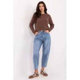 Tyto dámské džíny typu carrot jsou módní a pohodlnou volbou na každý den, spojující stylový vzhled s pohodlím nošení. Vyrobené z vysoce kvalitní směsi bavlny, polyesteru, elastanu a viskózy, jsou měkké, pružné a skvěle se přizpůsobují postavě, poskytují plnou volnost pohybu. Model s vysokým pasem krásně zdůrazňuje pas, a charakteristický střih carrot, trochu volnější v bocích a zužující se k dolů, dodává stylizaci lehkosti a moderního vzhledu. Zapínání pásku zdůrazňuje pas a dodává kalhotám elegantní zakončení. Džíny mají zapínání na zip a knoflík, vložené kapsy vpředu a otevřené kapsy vzadu, díky čemuž nejsou pouze stylové, ale i funkční. Jako další detail je ozdobný přívěsek u opasku, který dodává celku módní, ženský akcent. Ideální do casualových, každodenních stylizací, skvěle se kombinují s tričkem, halenkou nebo lehkým svetrem.