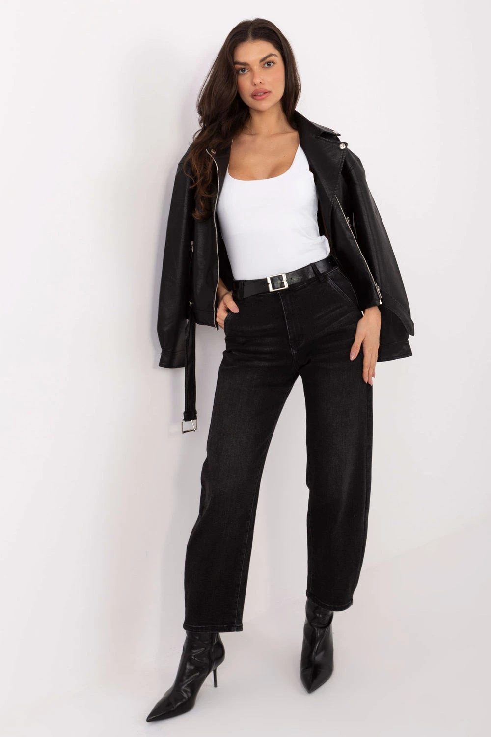 Dámské džíny v casual stylu jsou ideální nabídkou pro každodenní outfit. Vyrobené z odolné směsi bavlny, elastanu a polyesteru, poskytují pohodlí, dostatečnou pružnost a komfort po celý den. Model má vysoký pas, který krásně zdůrazňuje pas a poskytuje stabilní sedění. Užší nohavice dodávají postavě lehkost a vytvářejí moderní, ženský střih. Hladký vzor dělá z kalhot velmi univerzální kousek, který ladí s mnoha styly. Džíny se zapínají na zip a knoflík, a jejich funkčnost zdůrazňují boční kapsy vpředu a otevřené kapsy vzadu, které jim dodávají klasický charakter. Další výhodou je zapínací pásek, umožňující individuální přizpůsobení kalhot v pasu. Stylové, praktické a pohodlné, ideální na každý den.