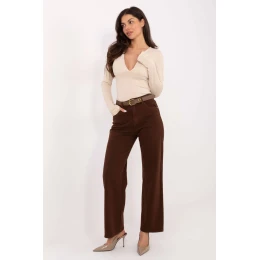 Dámské džíny s přímou nohavicí jsou klasickým modelem ve stylu casual, ideální na každodenní příležitosti. Vyrobené z vysoce kvalitní bavlny s přídavkem elastanu poskytují pohodlí, odolnost a lehkou pružnost, díky čemuž se perfektně přizpůsobují postavě. Model má vysoký pas, který zdůrazňuje pas, a rovné nohavice dodávají kalhotám nadčasový a elegantní charakter. Hladký vzor dělá z džínů univerzální kousek, který lze snadno kombinovat s různými kousky z garderóby. Kalhoty se zapínají na zip a knoflík, mají kapsy na přední straně a otevřené kapsy na zadní straně, což zvyšuje jejich funkčnost. Nadčasové, pohodlné a praktické, ideální pro každodenní stylizace.