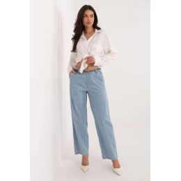 Dámské jeansy typu wide leg jsou módním a pohodlným návrhem ve stylu casual, ideální pro každodenní outfit. Vyrobené z vysoce kvalitní bavlny zajistí pohodlí a dlouhou trvanlivost. Hladký vzor jim dodává univerzální charakter, díky čemuž se snadno kombinují s různými kousky oblečení. Model s vysokým pasem krásně zdůrazňuje pas a opticky prodlužuje postavu, zatímco široké nohavice zaručují volnost pohybu a zapadají do aktuálních trendů. Jeansy se zapínají na zip a knoflík, co zajistí dobrou vestavbu. Praktické kapsy zvyšují funkcionalitu a zapínací pletený pásek představuje stylový doplněk, který dokončuje celkový vzhled a dodává kalhotám originální charakter.