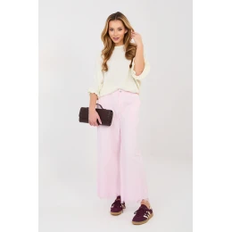Dámské džíny s širokými nohavicemi jsou stylovým a pohodlným návrhem na každý den, ideální pro každodenní outfit. Hladký střih a široké nohavice jim dodávají moderní, volný charakter a zajišťují pohodlí po celý den. Kalhoty skvěle ladí jak s klasickým tričkem, tak s elegantní blůzou. Model je vyroben z vysoce kvalitní bavlny, která zaručuje trvanlivost a pohodlí při nošení. Vysoký pas krásně zdůrazňuje pas a tvaruje postavu, a elastická guma vsazená do pasu zajišťuje lepší přizpůsobení a další pohodlí. Klasické zapínání na zip a knoflík a boční kapsy zvyšují funkčnost kalhot. Dekorativní krajkový lem na spodku nohavic představuje decentní, ženský akcent, který tento model odlišuje od klasických džínů.