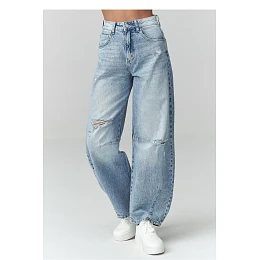 Stylové dámské džíny s potřením se zužujícím se dolem v odstínu denimu jsou ideální volbou pro ženy, které ocení módní a zároveň pohodlný střih. Model jemně rozšiřuje se v bocích a poté jemně zužuje dolů, vytvářejíc moderní, lehce balónový tvar nohavice. Vysoký pas krásně zdůrazňuje pas a opticky prodlužuje nohy, poskytujíc pohodlí po celý den. Módní potřeniny dodávají kalhotám charakter v casual a streetwear stylu. Klasické kapsy a zapínání na knoflík a zip zdůrazňují nadčasový, džínový design. Tyto dámské džíny skvěle ladí s přiléhavým topem, oversize sako, teniskami nebo kotníčkovými botami. Vyrobeno v Itálii.