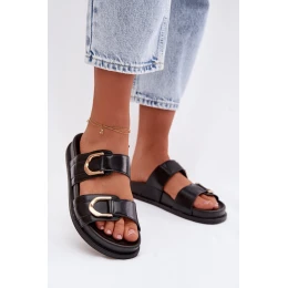Eko Kožené Dámské Pantofle S Pásky Černé Rosinessa