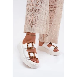 Eko Kožené Sandály Dámské Na Platformě S Přezkami Bílé Xanivia
