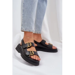 Eko Kožené Sandály S Přezkami Černé Vulinea