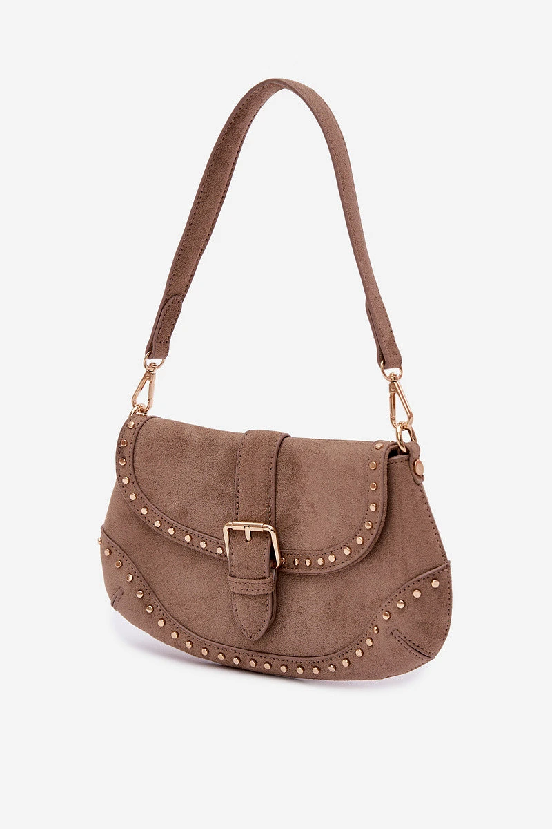 Eko semišová kabelka s cvočky tmavě béžová Clarielle