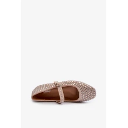 Ekologické semišové baleríny zdobené béžovými kamínky Tinara